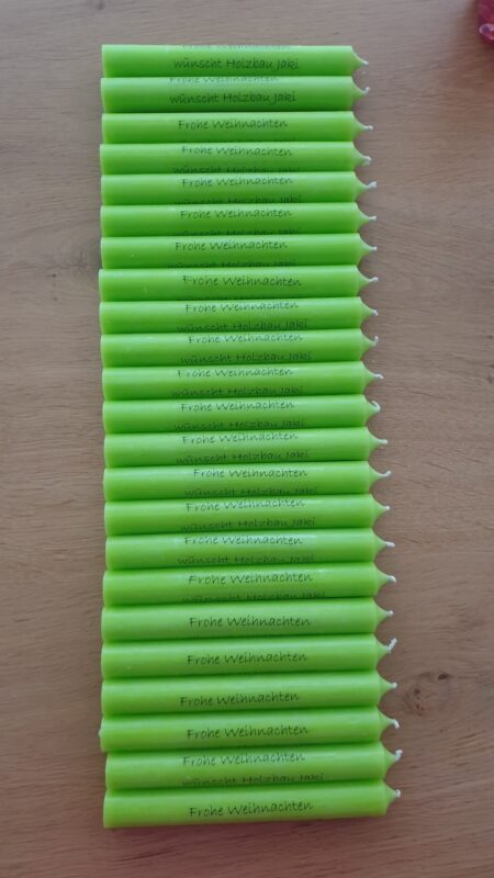 Ich fertige auch auf Wunsch individuelle Weihnachtsgeschenke, natürlich auch für Firmen, wie Kerzen mit Logo oder gewünschter Beschriftung.